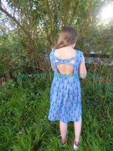 Pour réaliser le joli détail qui donne son nom à la robe « Starlette », à savoir les bandes de tissu dans le dos, j’ai tout simplement découpé une bande de tissu de 20 x 5 cm , que j’ai cousue endroit contre endroit, et simplement retournée comme pour une bretelle ...je vous renvoie au tuto où je vous explique TOUT !
